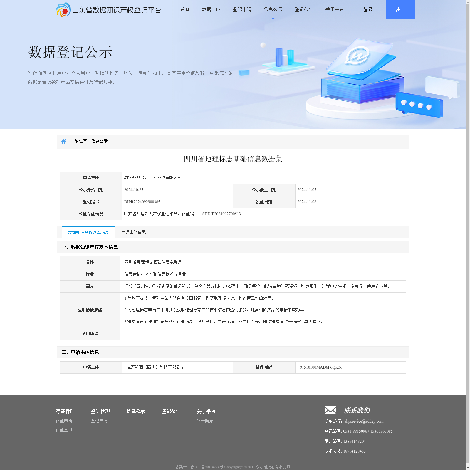 鼎宏数商(四川)科技有限公司 本次登记的数据知识产权 四川省地理标志基础信息数据集, 汇总了四川省地理标志基础信息数据,包含产品介绍、地域范围、确权年份、独特自然生态环境、种养殖生产过程中的需求、专用标志使用企业等。