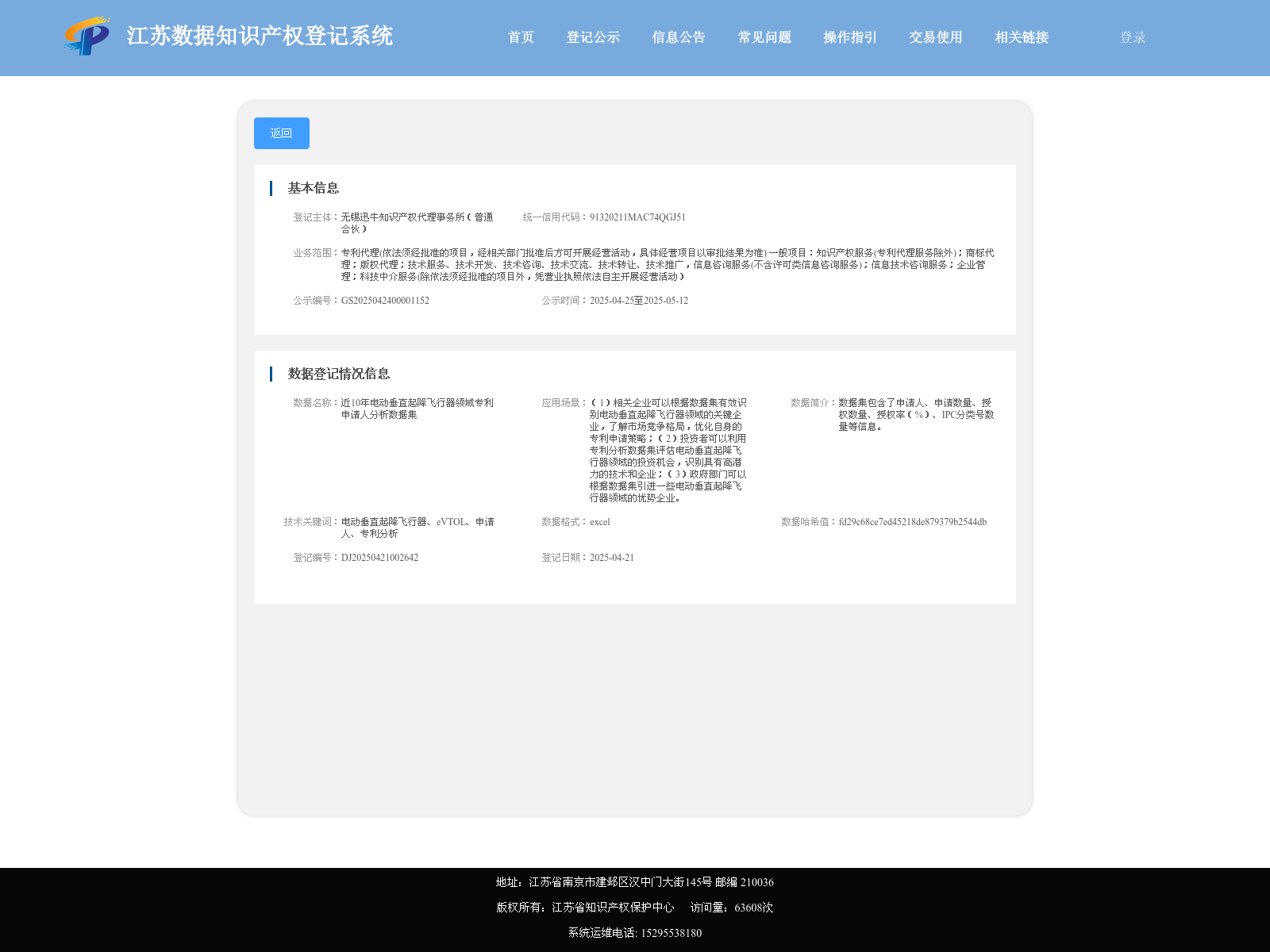 关于 江苏数据知识产权登记系统 , 由江苏省知识产权保护中心开发的系统,为依法取得、按照一定规则处理的、具有商业价值和智力成果属性的数据集提供登记服务。该系统依托江苏省知识产权大数据平台,支持对登记数据知识产权相关专利信息进行查询展示,并已与江苏省公证区块链对接。系统的上线为数据知识产权的协同保护提供了有力支撑,未来还将陆续推出数据知识产权交易等功能模块,促进数据知识产权的流通使用,助力江苏数字经济高质量发展。