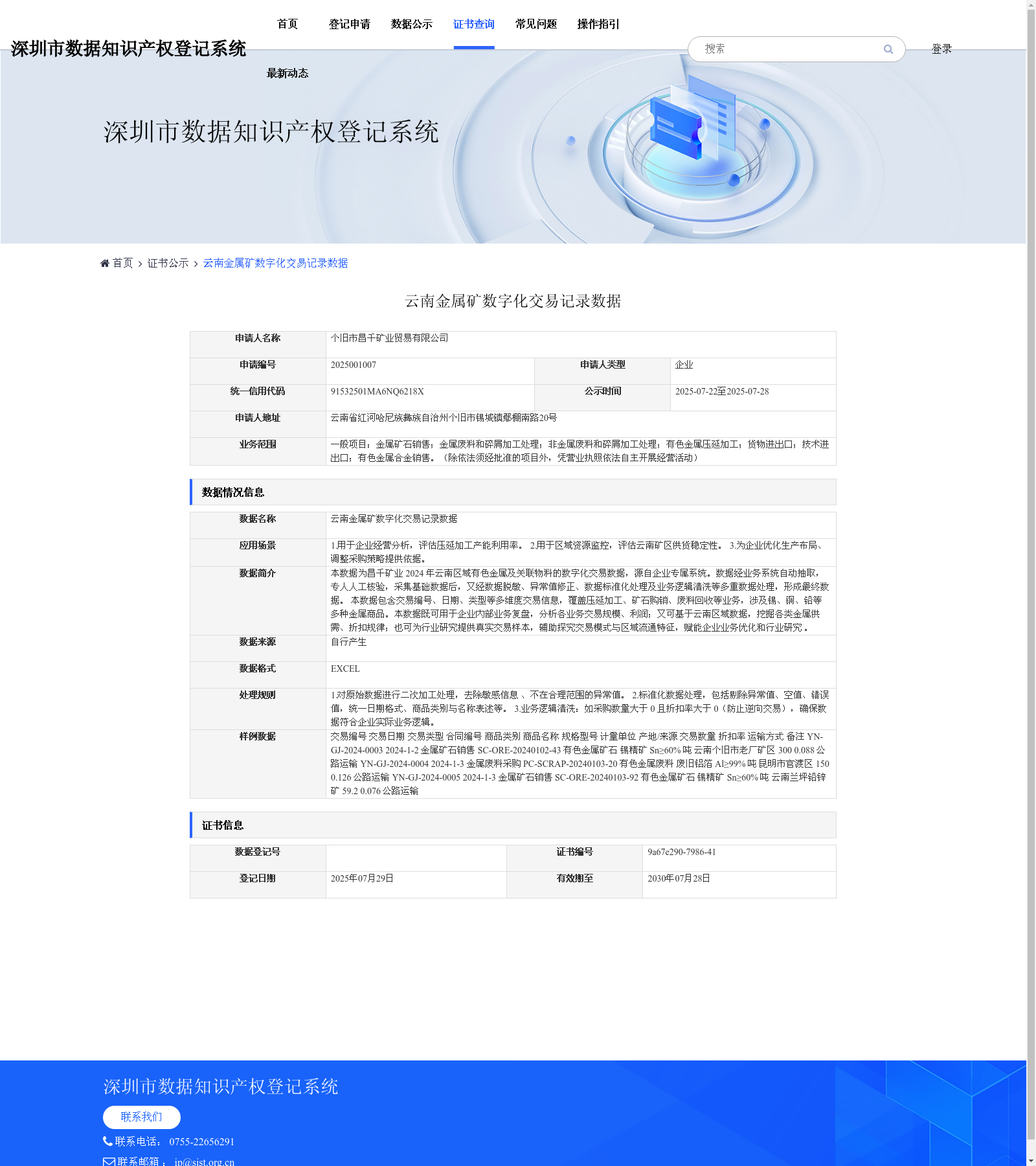 个旧市昌千矿业贸易有限公司 本次登记的数据知识产权 云南金属矿数字化交易记录数据, 1.用于企业经营分析,评估压延加工产能利用率。 2.用于区域资源监控,评估云南矿区供货稳定性。 3.为企业优化生产布局、调整采购策略提供依据。