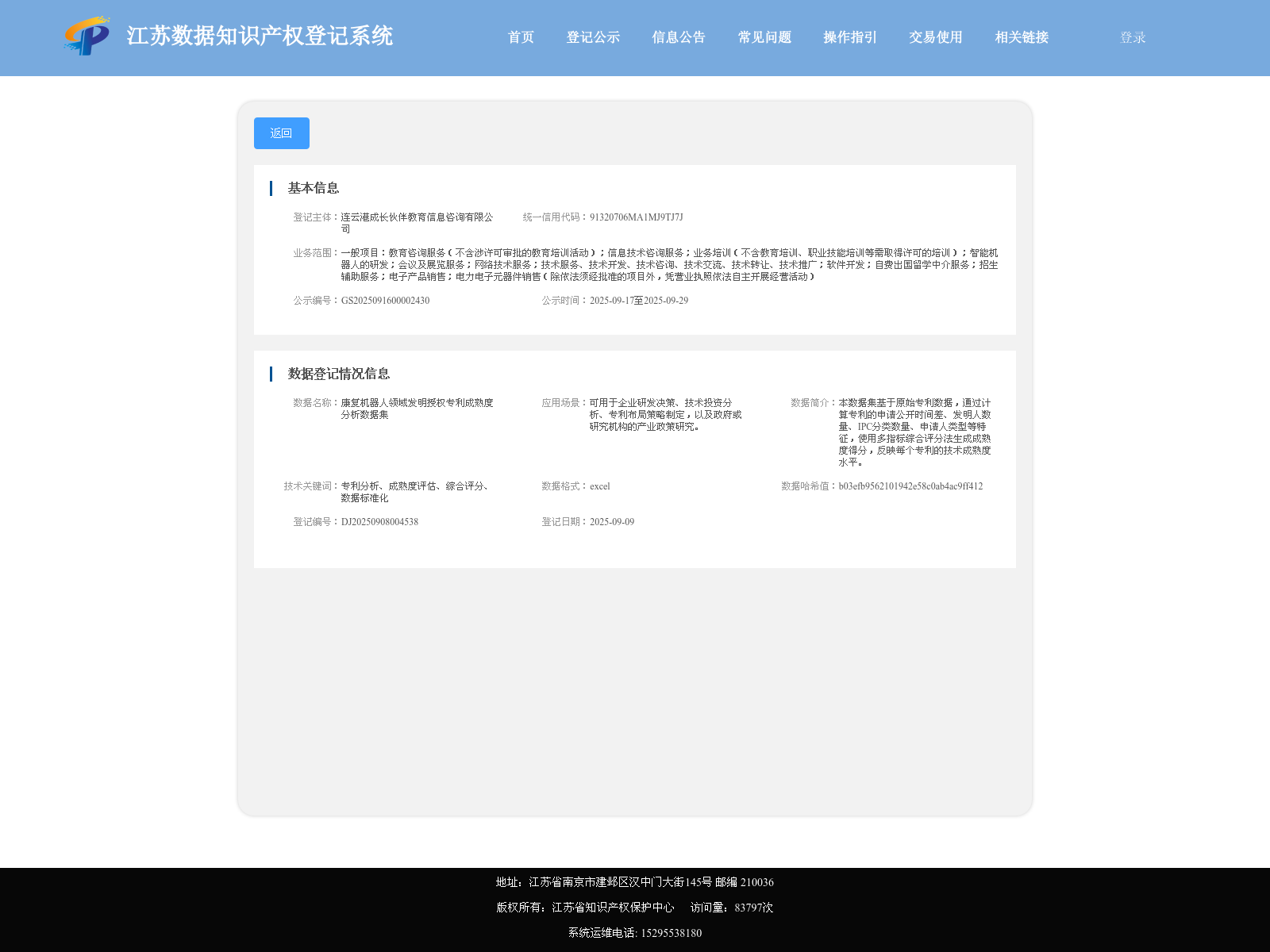 关于 江苏数据知识产权登记系统 , 江苏数据知识产权登记系统是一个专门用于数据知识产权登记和信息公开的平台,旨在为数据所有者提供知识产权的保护和登记服务。