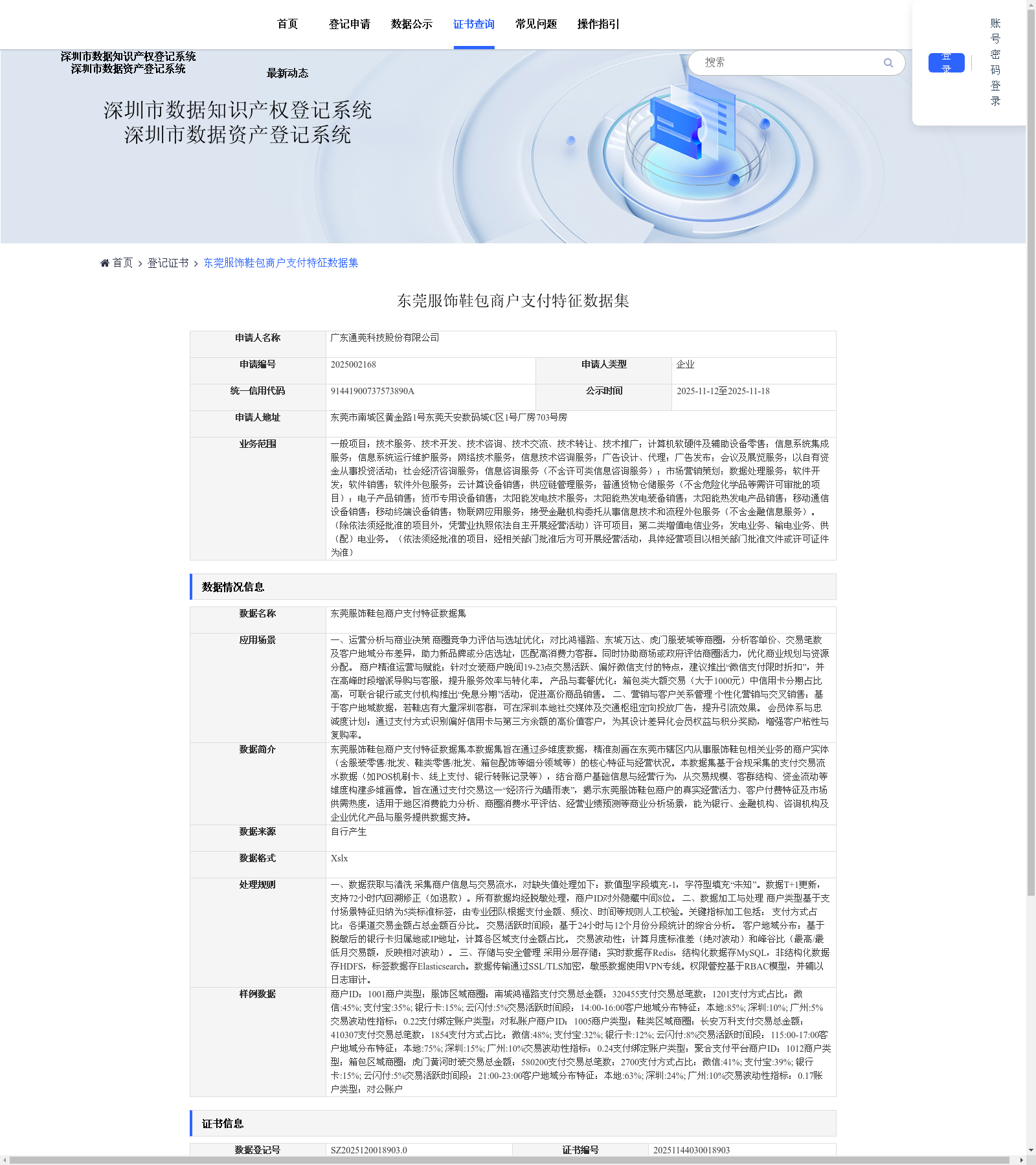 关于 深圳市数据知识产权登记系统 , 深圳市数据知识产权登记系统是一个由深圳市标准技术研究院运营的官方平台,旨在为符合条件的数据集合提供知识产权登记服务。该系统依据国家知识产权局试点要求及深圳市知识产权局《数据知识产权登记工作方案》建立,主要功能包括数据存证、登记申请、材料审核、公示及颁发登记证书。登记后的数据知识产权证书可用于数据交易、司法保护等场景,促进数据流通与共享,支持数字经济发展。平台提供在线登记、公示查询、证书管理等功能,并配套操作指引和最新动态发布服务。