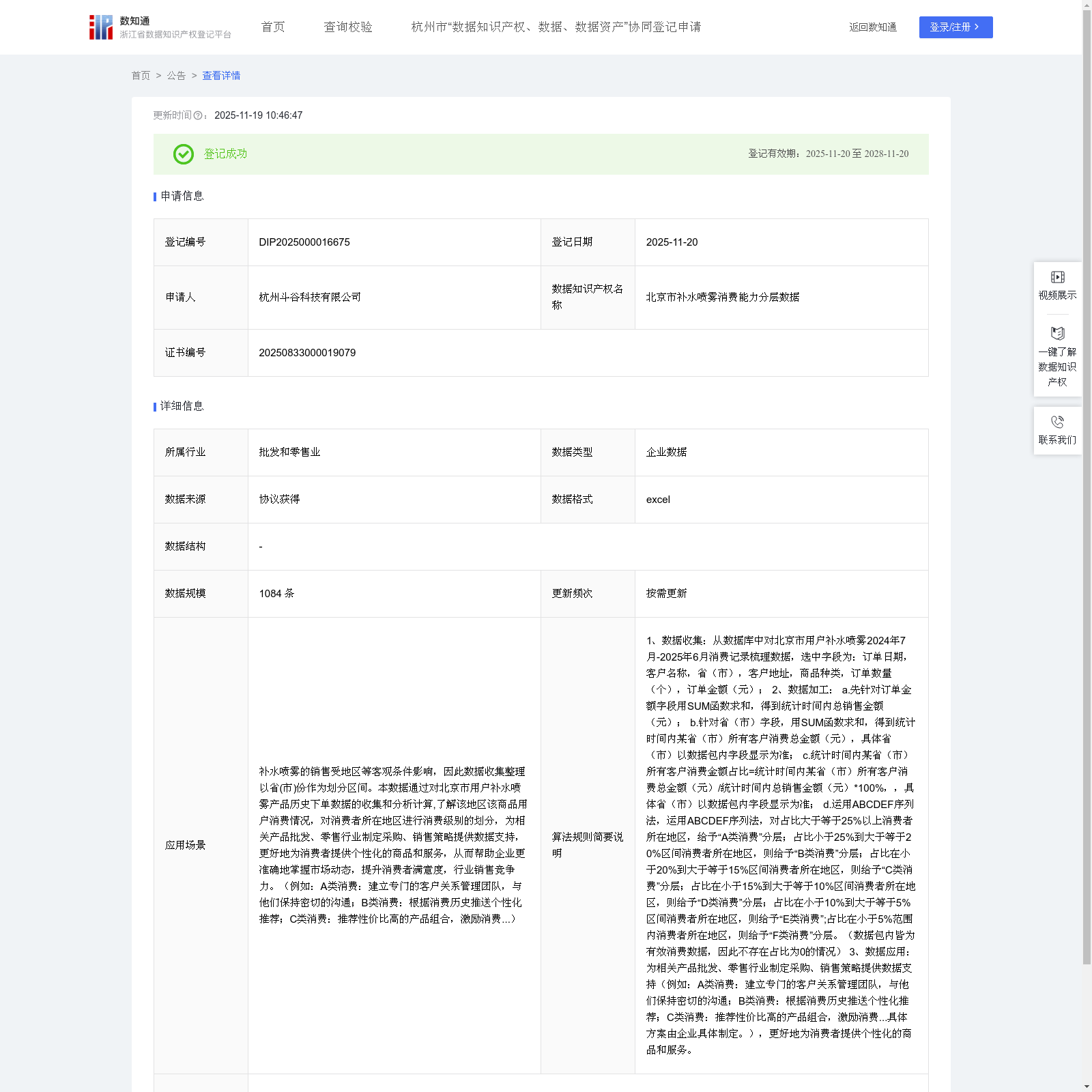 关于 浙江省数据知识产权登记平台 , 浙江省数据知识产权登记平台是一个专门用于登记和管理数据知识产权的官方平台。该平台允许企业和个人申请登记其数据知识产权,包括专利分类数据、客户价值评估数据等。平台提供公告功能,展示已登记、放弃或撤销的数据知识产权信息,并提供详细的申请人、申请时间和更新信息。