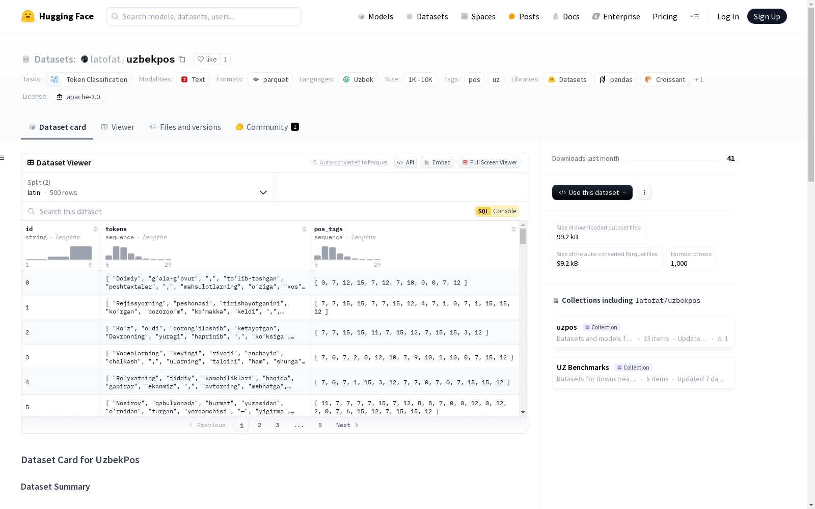 凯泽斯劳滕-兰道大学 本次发布的数据集 UzbekPOS, UzbekPOS数据集是首个公开的乌兹别克语词性标注基准数据集,由凯泽斯劳滕-兰道大学和萨尔兰大学的研究团队创建。该数据集包含500个句子,共计5831个单词,涵盖了新闻和小说两种文本类型。数据集的标注基于通用词性标注(UPOS)标准,适用于乌兹别克语的拉丁和西里尔两种书写形式。数据集的创建过程包括手动标注和脚本转换,旨在为乌兹别克语的词性标注任务提供高质量的基准数据。该数据集的应用领域包括自然语言处理中的词性标注、语言分析和语料库语言学,旨在解决乌兹别克语这一低资源语言在NLP任务中的资源匮乏问题。