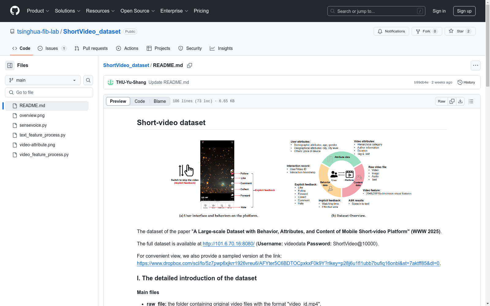 清华大学 本次发布的数据集 移动短视频平台行为、属性与内容大规模数据集, 本数据集由清华大学电子工程系提供,包含来自真实移动短视频平台的用户行为、属性和视频内容。数据集覆盖了10,000名志愿者的153,561个视频,具有丰富的用户行为和属性数据,以及视频内容特征。数据集旨在支持用户建模、社会科学、人类行为理解等领域的研究,特别是在改进用户建模和减轻AI算法带来的负面影响方面。