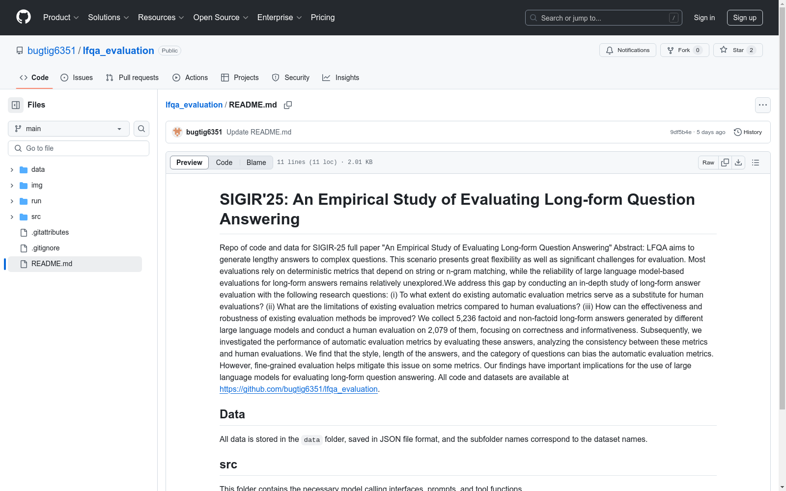 中国科学院计算技术研究所 本次发布的数据集 ASQA, ANTIQUE, Wikieval, 本文研究的数据集包括ASQA、ANTIQUE和Wikieval三个数据集,它们分别代表了模糊、事实和开放式问答的场景。这些数据集包含了由不同大型语言模型生成的5236个事实和非事实的长篇答案。其中,2079个答案经过了人工评估,主要关注正确性和信息性。该数据集旨在评估长篇问答(LFQA)的自动评估指标的有效性和鲁棒性,并与人工评估进行对比。数据集的创建过程包括从不同的LLM中收集答案,并使用人工评估来检验自动评估指标的准确性。数据集的应用领域是信息检索和问答系统,旨在解决长篇问答评估中存在的问题。