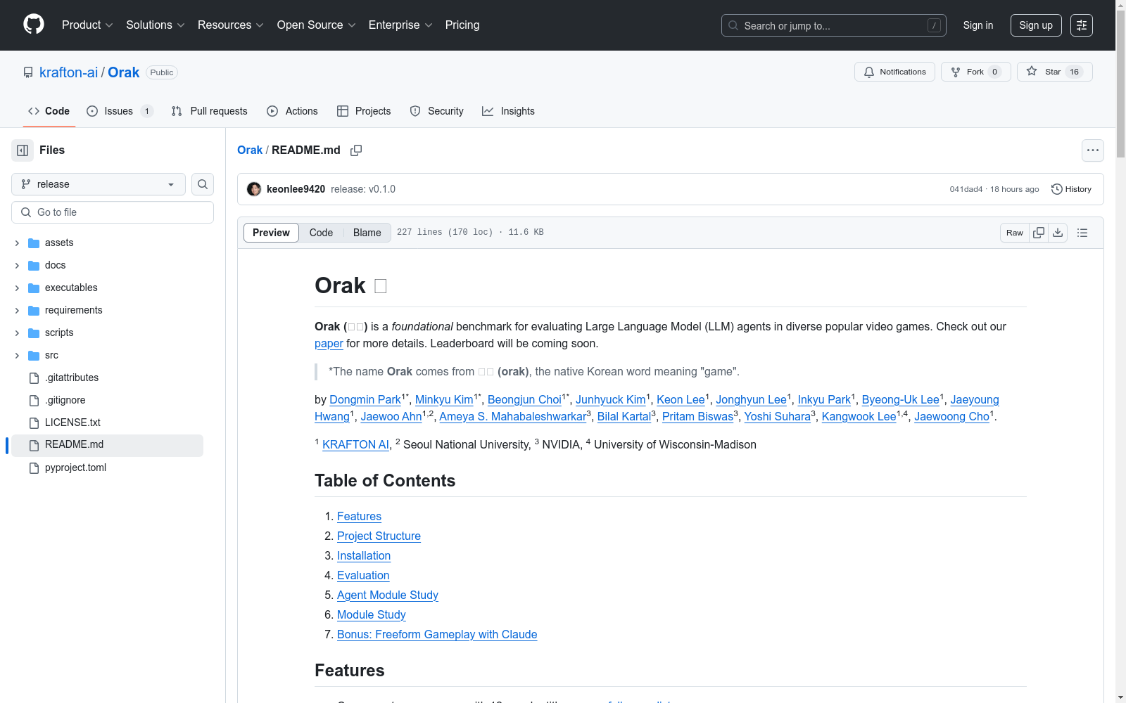 KRAFTON 本次发布的数据集 Orak, Orak是一个旨在训练和评估大型语言模型(LLM)代理在多种现实视频游戏中的能力的基准。该数据集包含12种流行的视频游戏,涵盖了所有主要类型,如动作、冒险、角色扮演、模拟、策略和益智游戏。Orak引入了基于模型上下文协议(MCP)的即插即用接口,允许LLM无缝连接到游戏并操作代理模块。此外,Orak还提供了一个微调数据集,其中包含专家LLM在Orak中的所有游戏上的游戏轨迹。该数据集旨在将预训练的LLM转变为有效的游戏代理。Orak提供了一个全面的评估框架,包括通用游戏得分排行榜、LLM战斗竞技场以及对视觉输入状态、代理策略和微调效果的深入分析。Orak不仅为开发通用游戏代理奠定了基础,而且成为在现实、长期决策任务上评估通用LLM的关键基准。