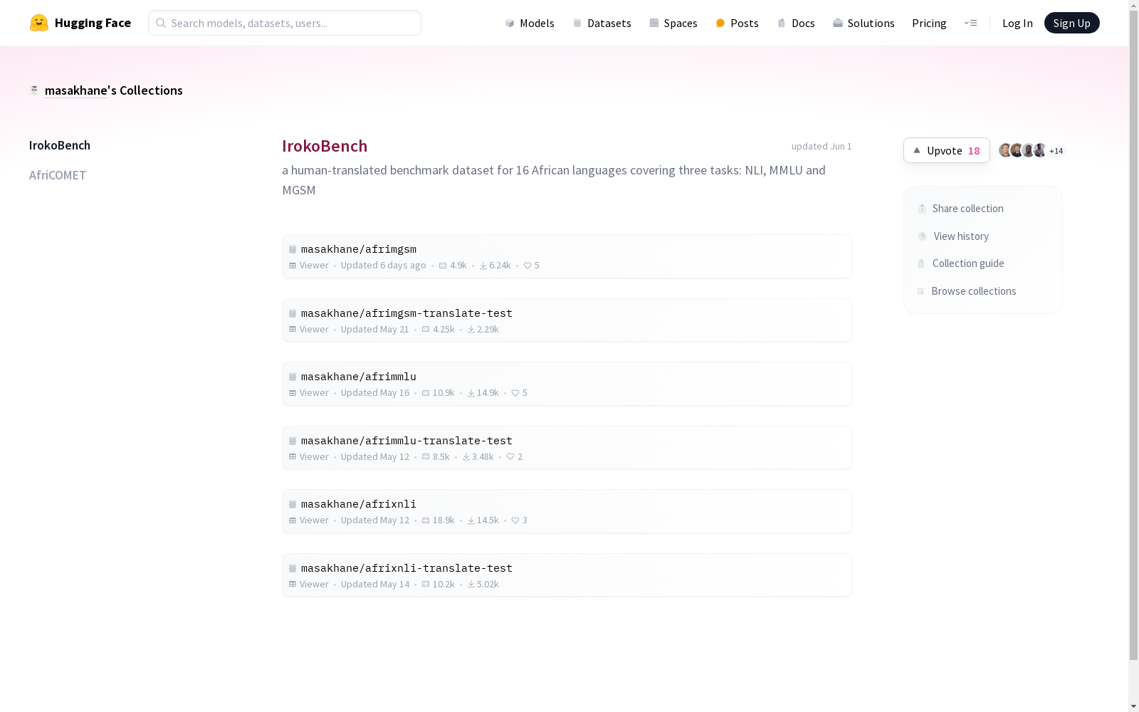 Masakhane NLP 本次发布的数据集 IrokoBench, IrokoBench是一个由Masakhane NLP创建的基准数据集,专门设计用于评估大型语言模型在16种非洲低资源语言上的表现。该数据集涵盖自然语言推理、数学推理和多选知识问答三个复杂任务。数据集通过专业翻译人员将英语评估数据集翻译成16种非洲语言,确保了数据的质量和适用性。IrokoBench的应用领域广泛,旨在解决非洲语言在人工智能领域中的代表性不足问题,推动这些语言的数字化和智能化进程。