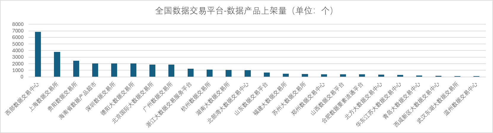 据分析,全国24家数据交易平台数据产品上架高潮持续中,头部数据交易所效应明显,西部、上海、贵阳三家交易场所贡献了市场总量的41.7%。其中,西部数据交易中心245家数据供方提供了6850个数据产品获得排名第一。