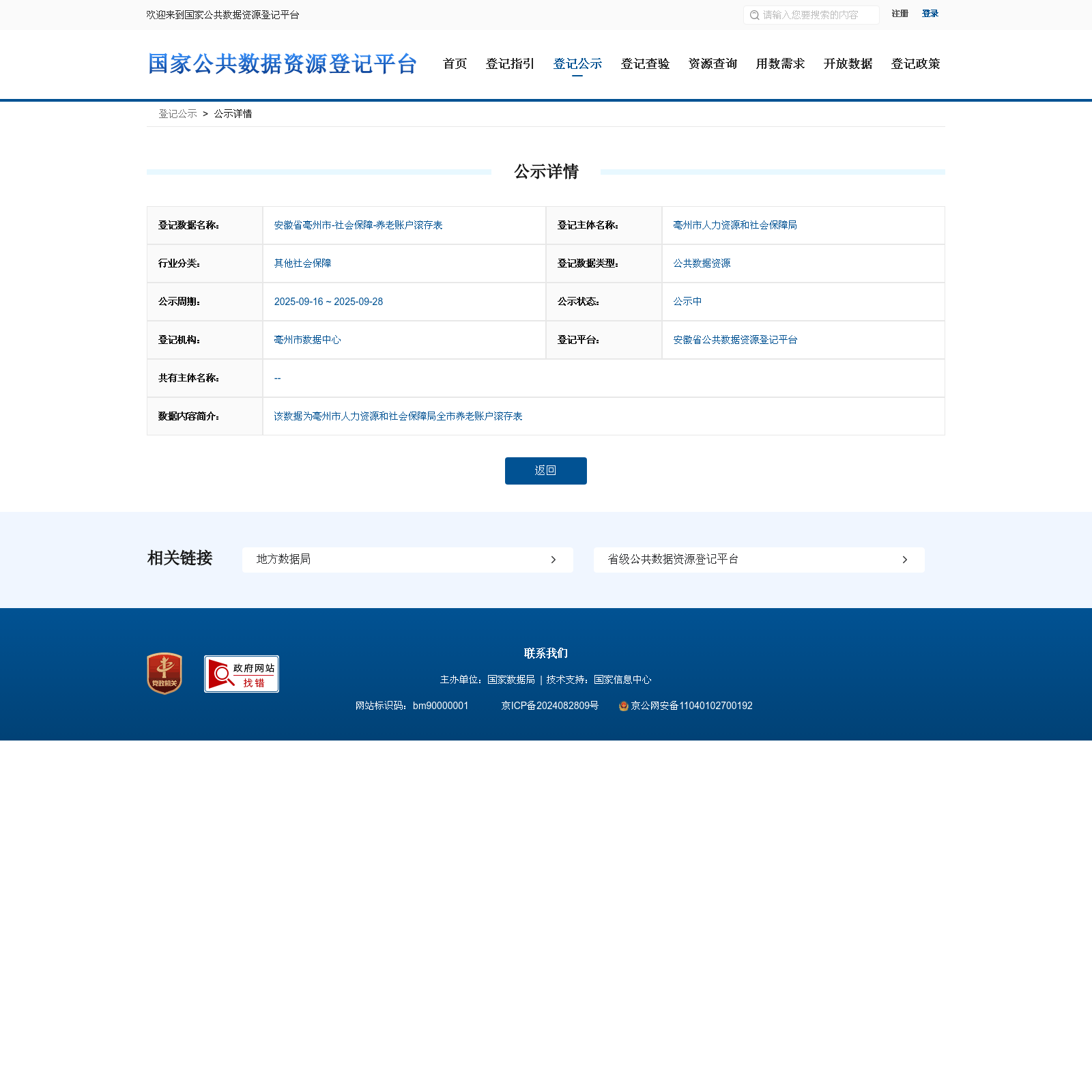 亳州市人力资源和社会保障局 本次登记的公共数据资源 安徽省亳州市-社会保障-养老账户滚存表, 该数据为亳州市人力资源和社会保障局全市养老账户滚存表