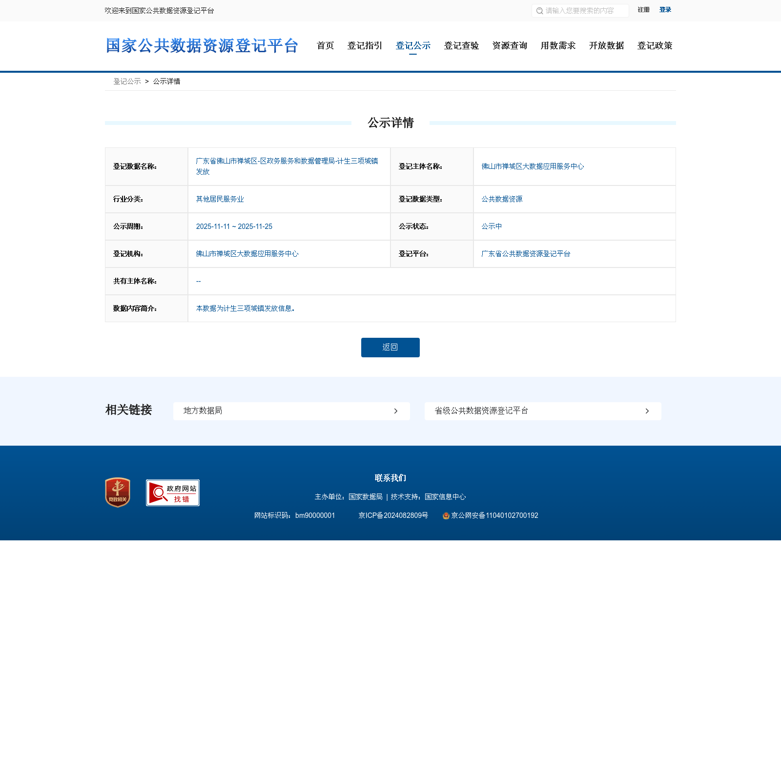 佛山市禅城区大数据应用服务中心 本次登记的公共数据资源 广东省佛山市禅城区-区政务服务和数据管理局-计生三项城镇发放, 本数据为计生三项城镇发放信息。