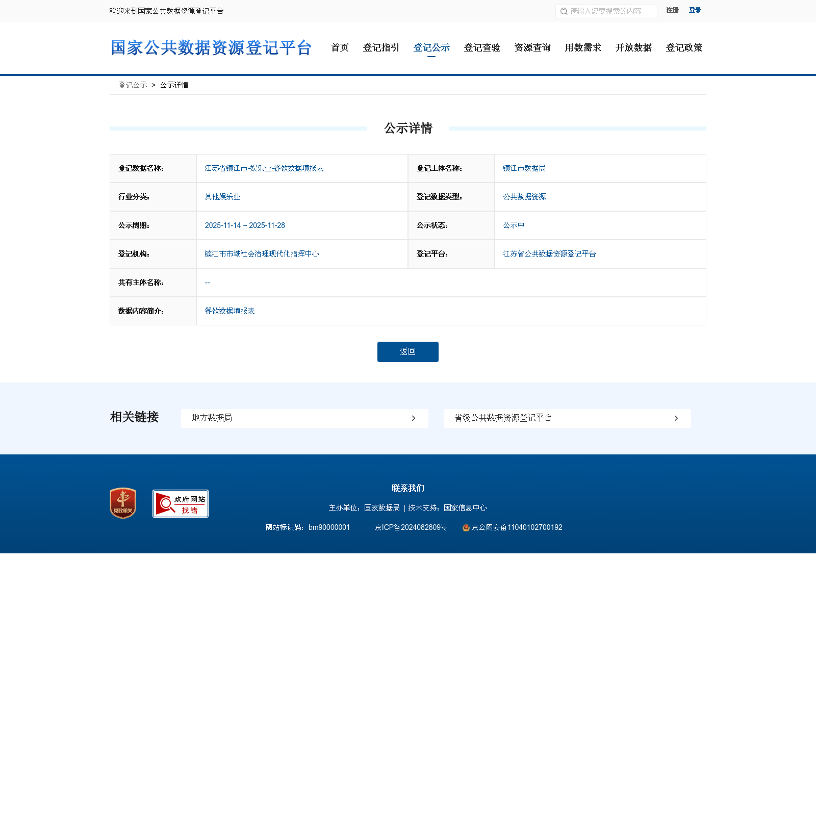 镇江市数据局 本次登记的公共数据资源 江苏省镇江市-娱乐业-餐饮数据填报表, 餐饮数据填报表