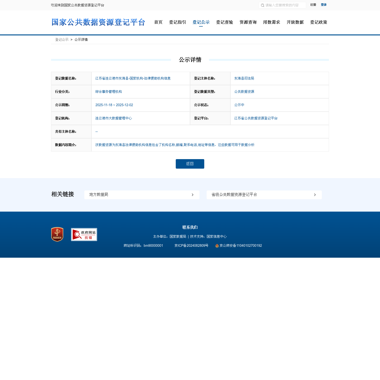 关于 国家公共数据资源登记平台 , 国家公共数据资源登记平台是开展公共数据资源登记工作的国家级信息化载体,于2025年3月1日正式上线运行。该平台的上线标志着我国数据要素市场化配置改革迈出了重要一步,对公共数据资源的开发利用和数据要素市场的健康发展具有深远影响。
