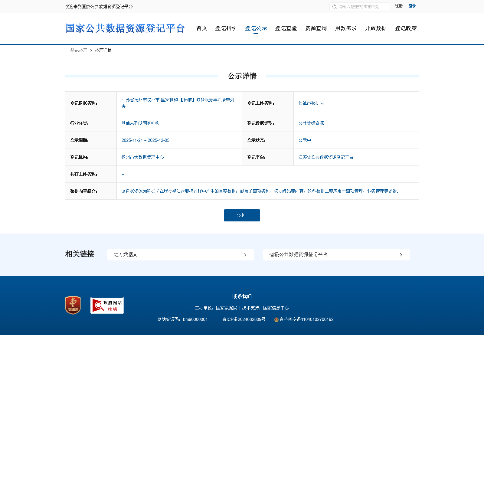 关于 国家公共数据资源登记平台 , 国家公共数据资源登记平台是开展公共数据资源登记工作的国家级信息化载体,于2025年3月1日正式上线运行。该平台的上线标志着我国数据要素市场化配置改革迈出了重要一步,对公共数据资源的开发利用和数据要素市场的健康发展具有深远影响。