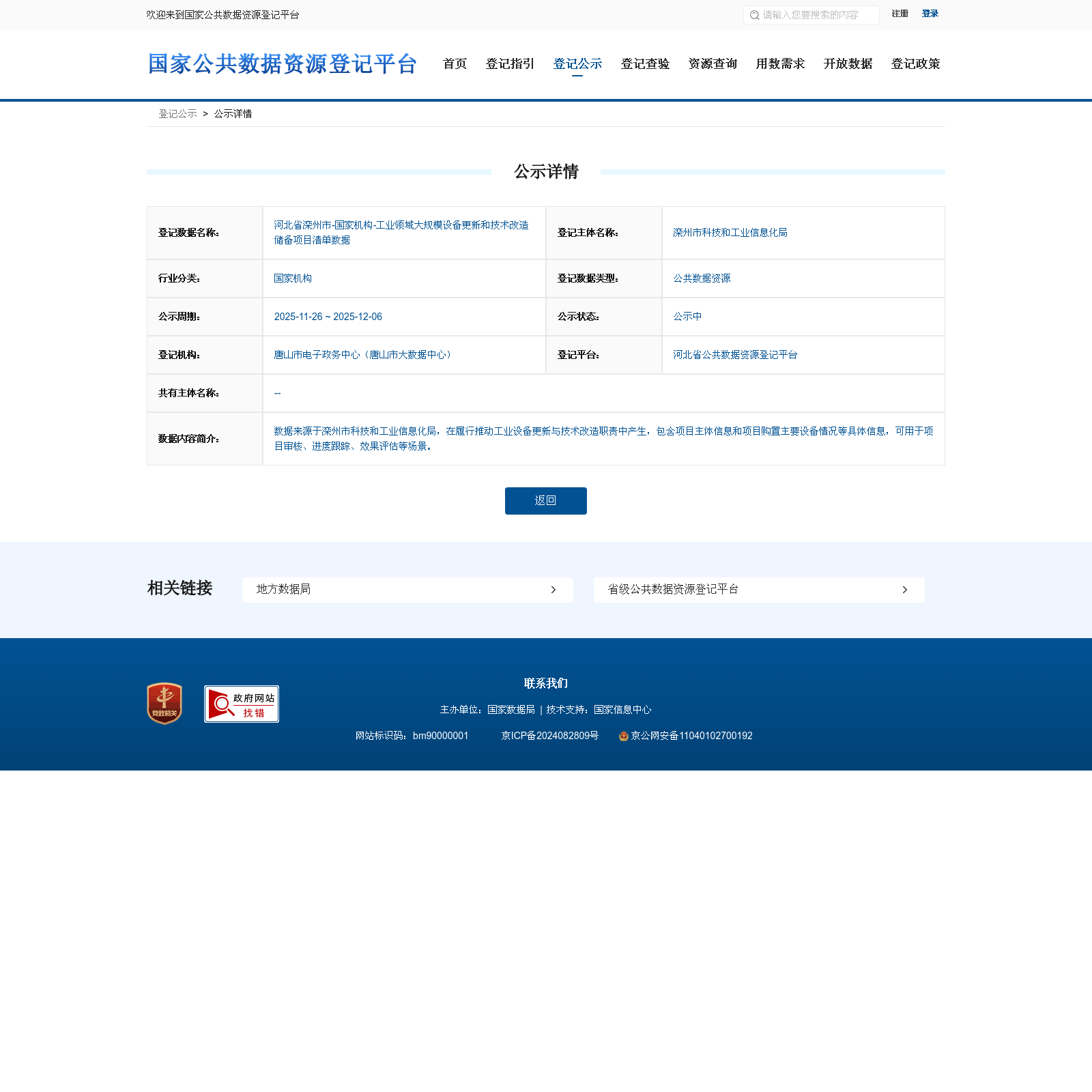滦州市科技和工业信息化局 本次登记的公共数据资源 河北省滦州市-国家机构-工业领域大规模设备更新和技术改造储备项目清单数据, 数据来源于滦州市科技和工业信息化局,在履行推动工业设备更新与技术改造职责中产生,包含项目主体信息和项目购置主要设备情况等具体信息,可用于项目审核、进度跟踪、效果评估等场景。