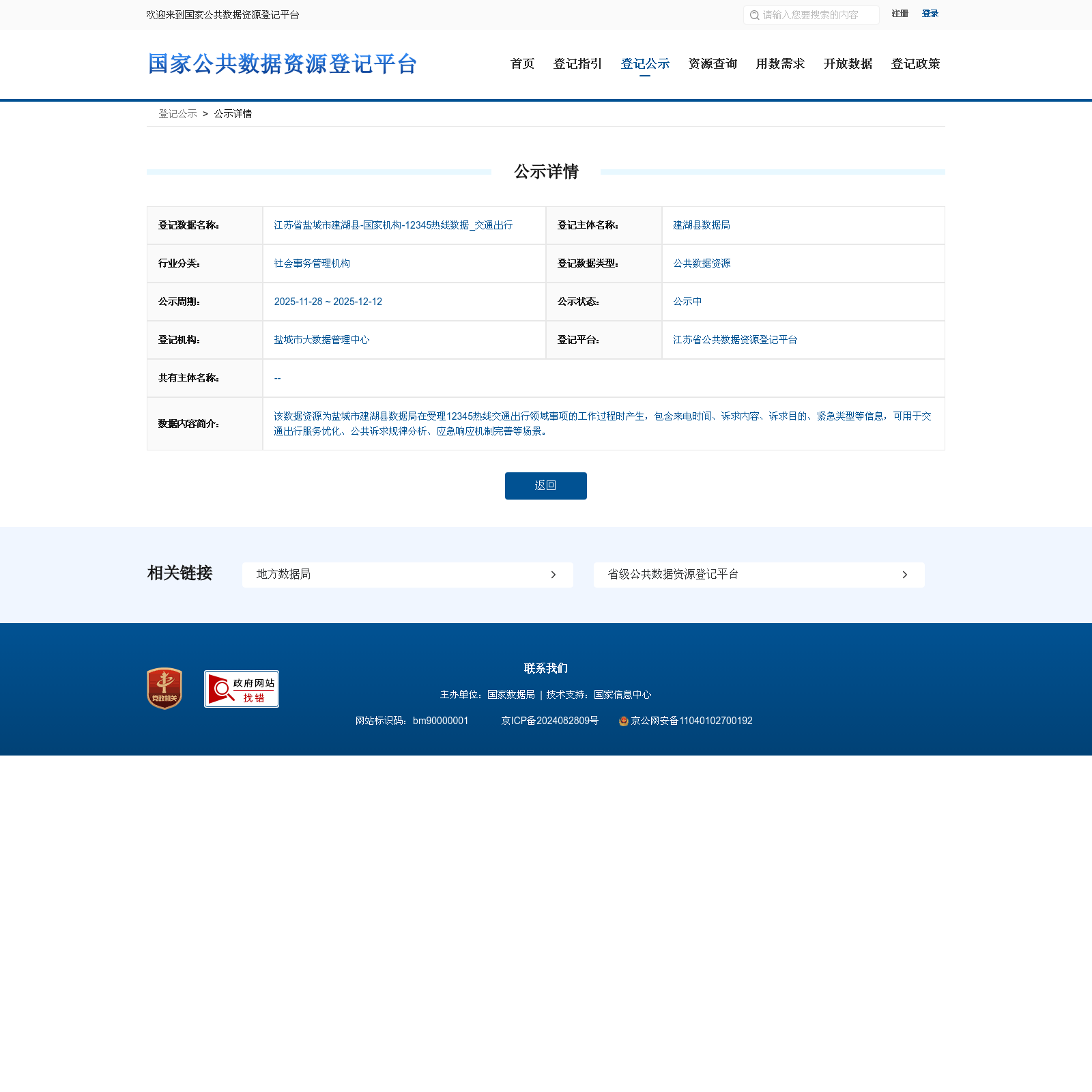 查看江苏省盐城市建湖县-国家机构-12345热线数据_交通出行