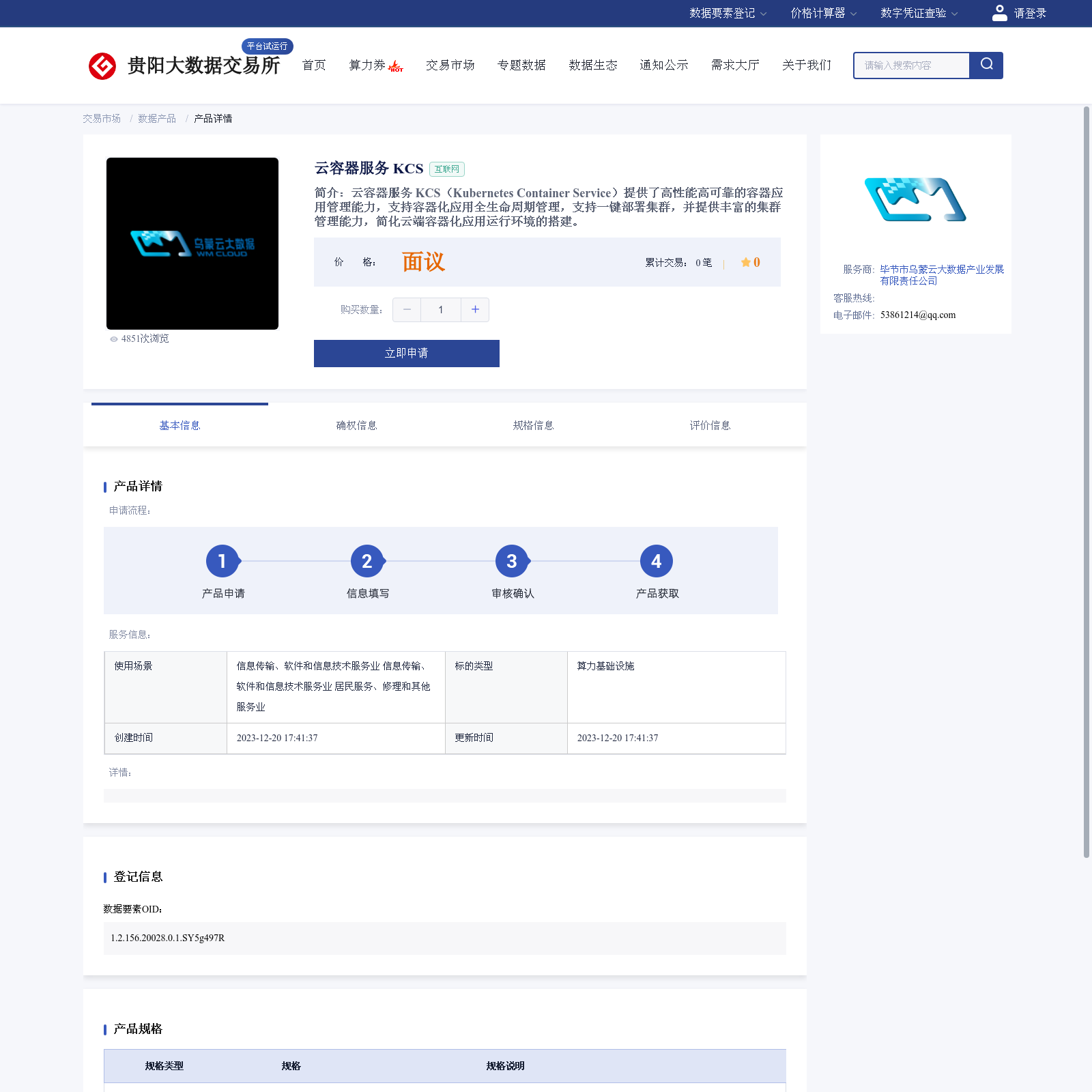毕节市乌蒙云大数据产业发展有限责任公司 本次上架的数据产品 云容器服务 KCS, 云容器服务 KCS(Kubernetes Container Service)提供了高性能高可靠的容器应用管理能力,支持容器化应用全生命周期管理,支持一键部署集群,并提供丰富的集群管理能力,简化云端容器化应用运行环境的搭建。