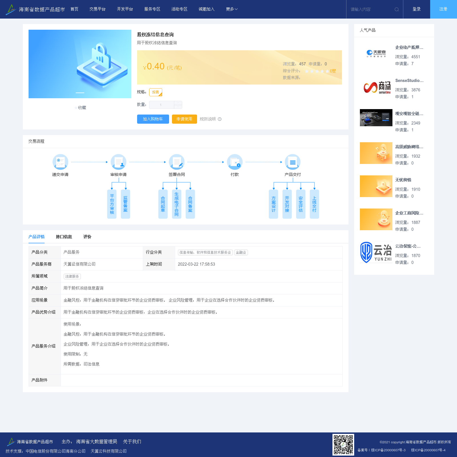 天翼征信有限公司 本次上架的数据产品 股权冻结信息查询, 用于股权冻结信息查询