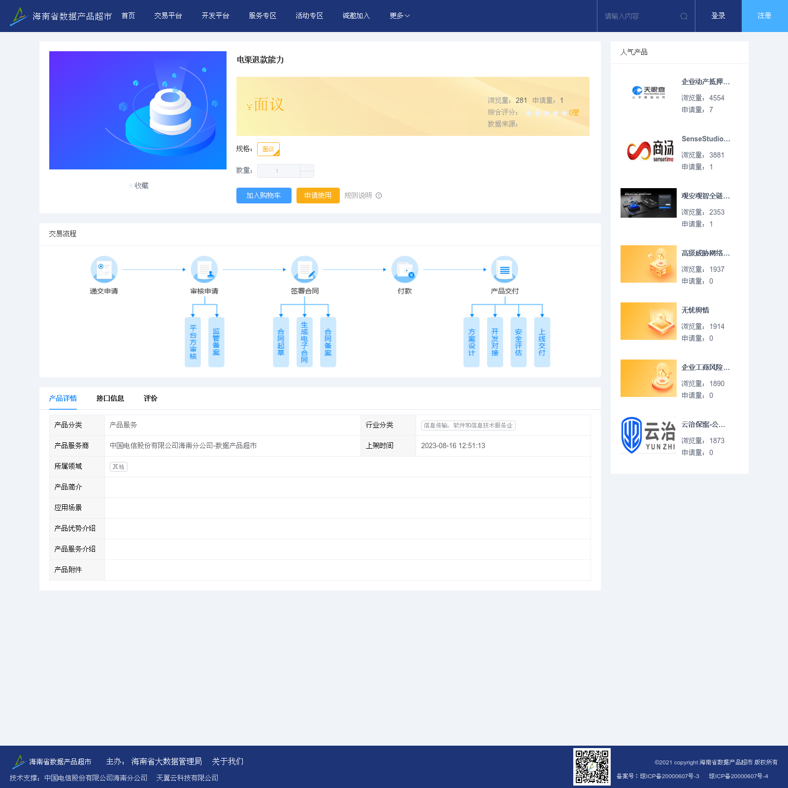 中国电信股份有限公司海南分公司-数据产品超市 本次上架的数据产品 电渠退款能力,