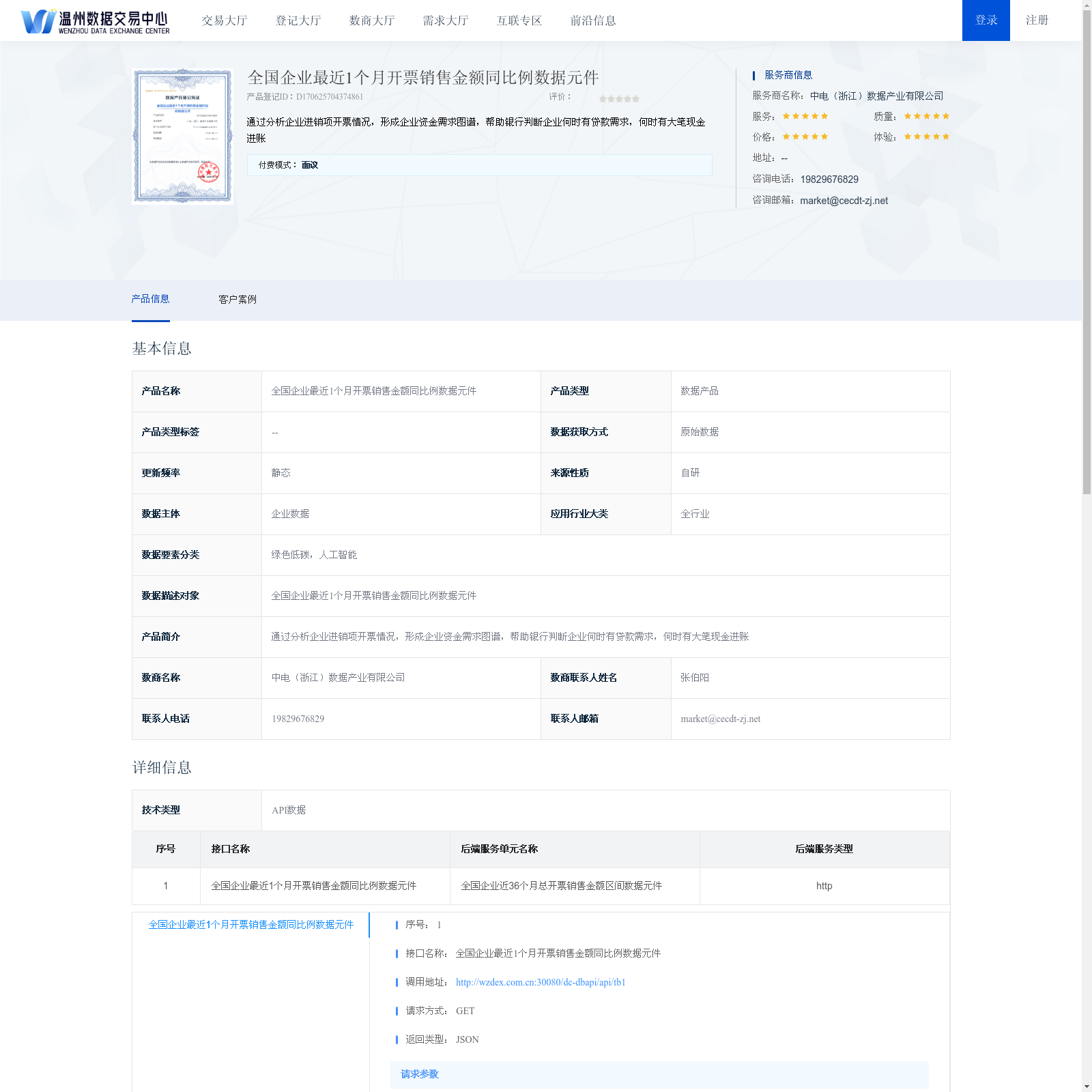 中电(浙江)数据产业有限公司 本次上架的数据产品 全国企业最近1个月开票销售金额同比例数据元件, 通过分析企业进销项开票情况,形成企业资金需求图谱,帮助银行判断企业何时有贷款需求,何时有大笔现金进账