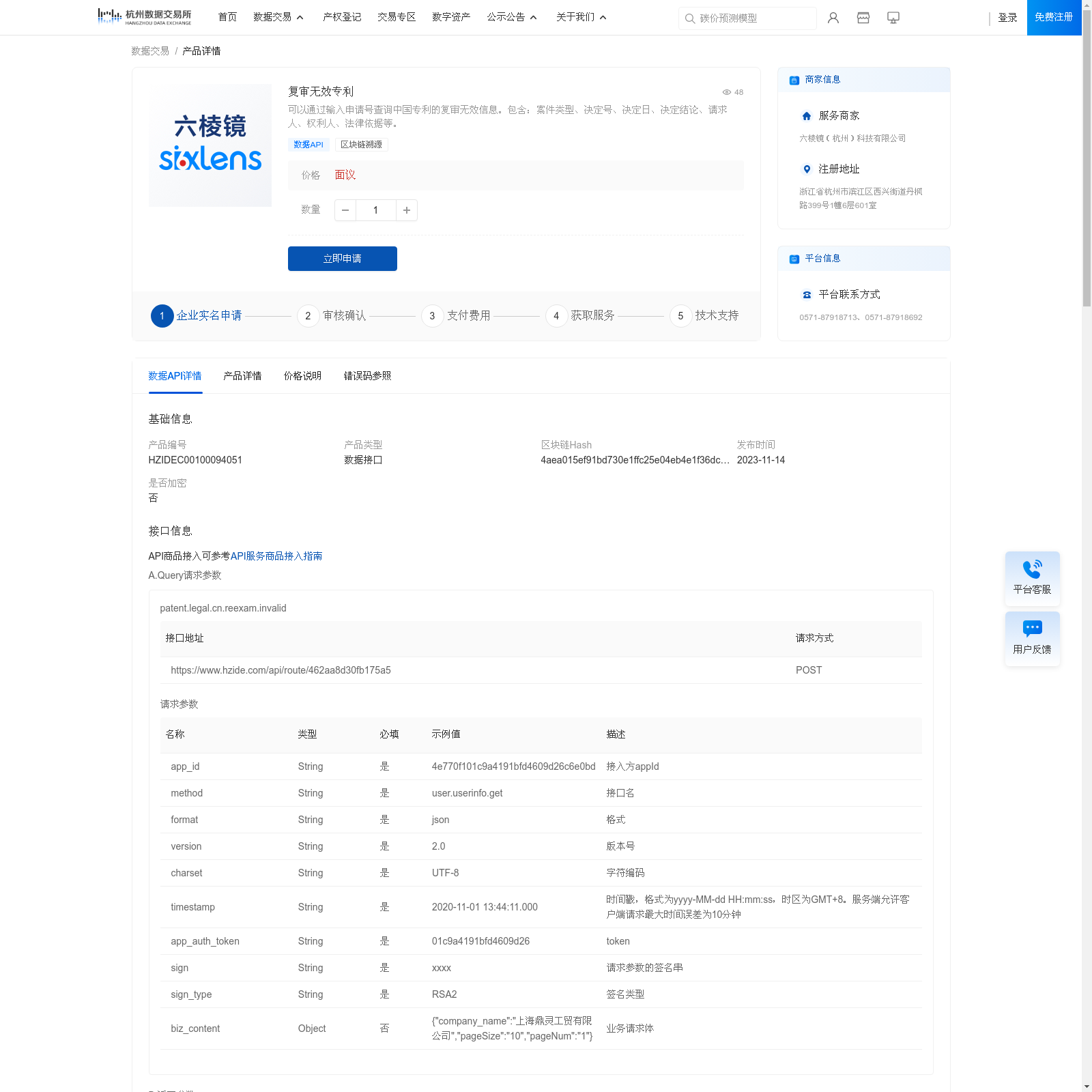 六棱镜(杭州)科技有限公司 本次上架的数据产品 复审无效专利, 可以通过输入申请号查询中国专利的复审无效信息。包含:案件类型、决定号、决定日、决定结论、请求人、权利人、法律依据等。