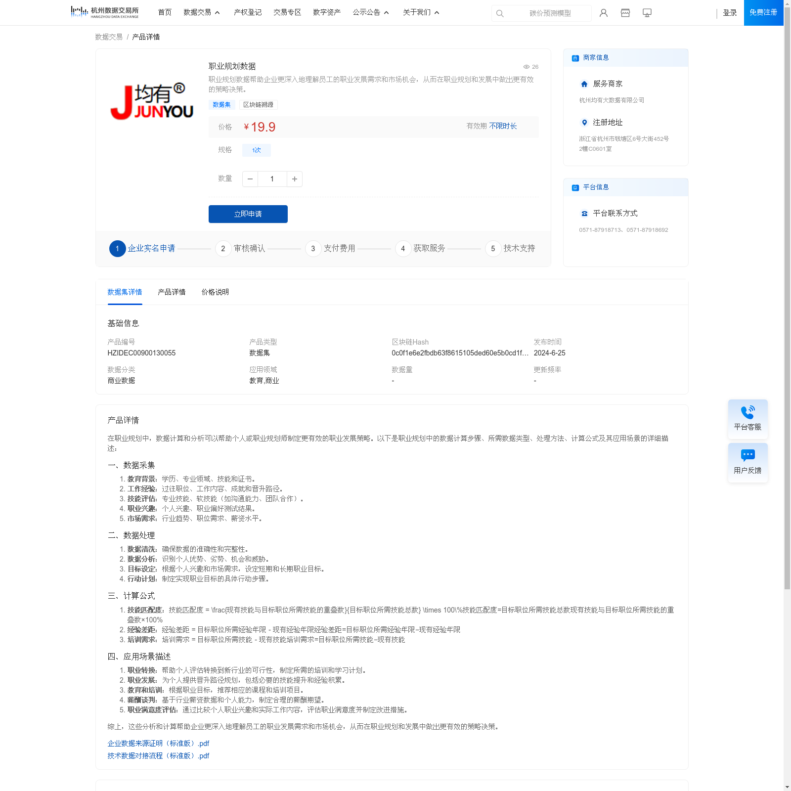 杭州均有大数据有限公司 本次上架的数据产品 职业规划数据, 职业规划数据帮助企业更深入地理解员工的职业发展需求和市场机会,从而在职业规划和发展中做出更有效的策略决策。