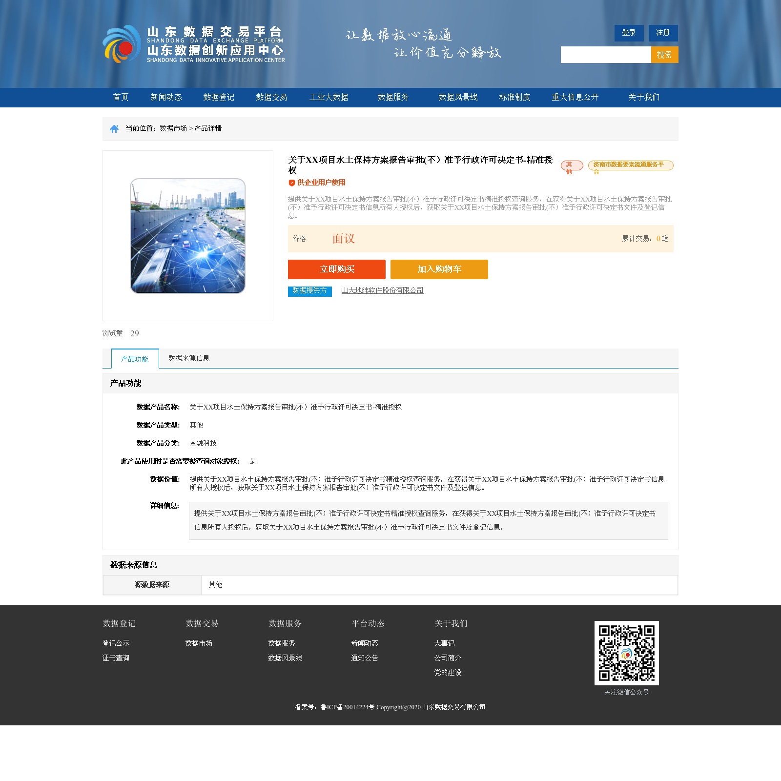 山大地纬软件股份有限公司 本次上架的数据产品 关于XX项目水土保持方案报告审批(不)准予行政许可决定书-精准授权, 提供关于XX项目水土保持方案报告审批(不)准予行政许可决定书精准授权查询服务,在获得关于XX项目水土保持方案报告审批(不)准予行政许可决定书信息所有人授权后,获取关于XX项目水土保持方案报告审批(不)准予行政许可决定书文件及登记信息。