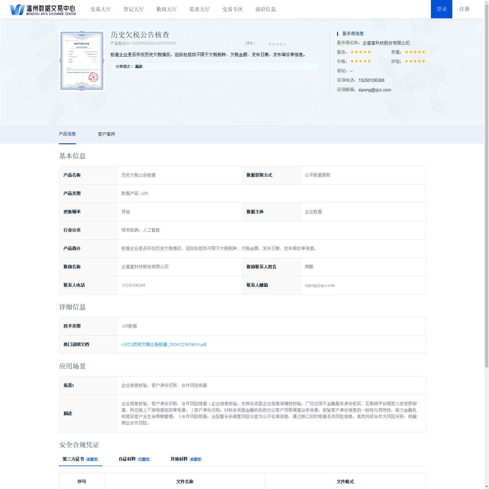 企查查科技股份有限公司 本次上架的数据产品 历史欠税公告核查, 核查企业是否存在历史欠税情况,返回包括但不限于欠税税种、欠税金额、发布日期、发布单位等信息。