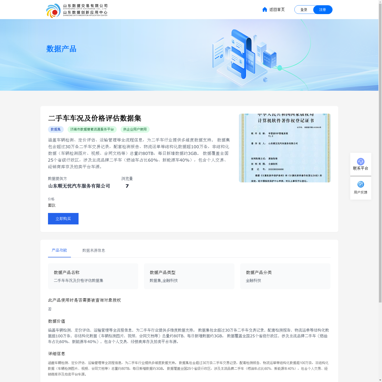 关于 山东数据交易平台 , 山东数据交易平台是一个专注于数据要素市场化配置的综合性服务平台,提供数据登记、数据交易、数据服务等功能。平台涵盖工业大数据、企业资质查询、DCMM贯标服务、区域经济大脑等多个领域的数据服务,并支持数据产品的合规登记与交易。此外,平台还提供标准制度、重大信息公开等服务,旨在促进数据要素的流通与利用。
