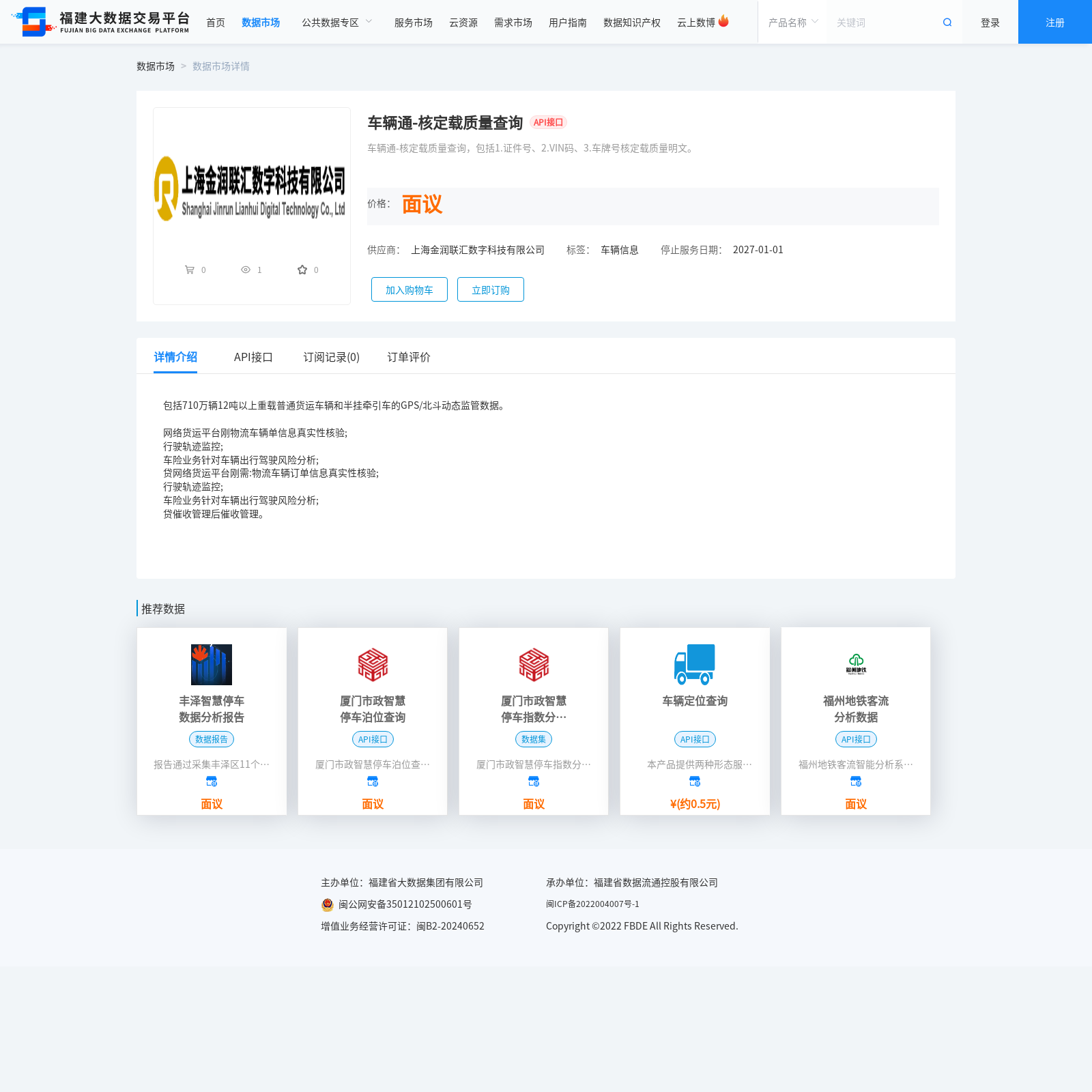 上海金润联汇数字科技有限公司本次上架的数据产品车辆通-核定载质量查询,车辆通-核定载质量查询,包括1.证件号、2.VIN码、3.车牌号核定载质量明文。