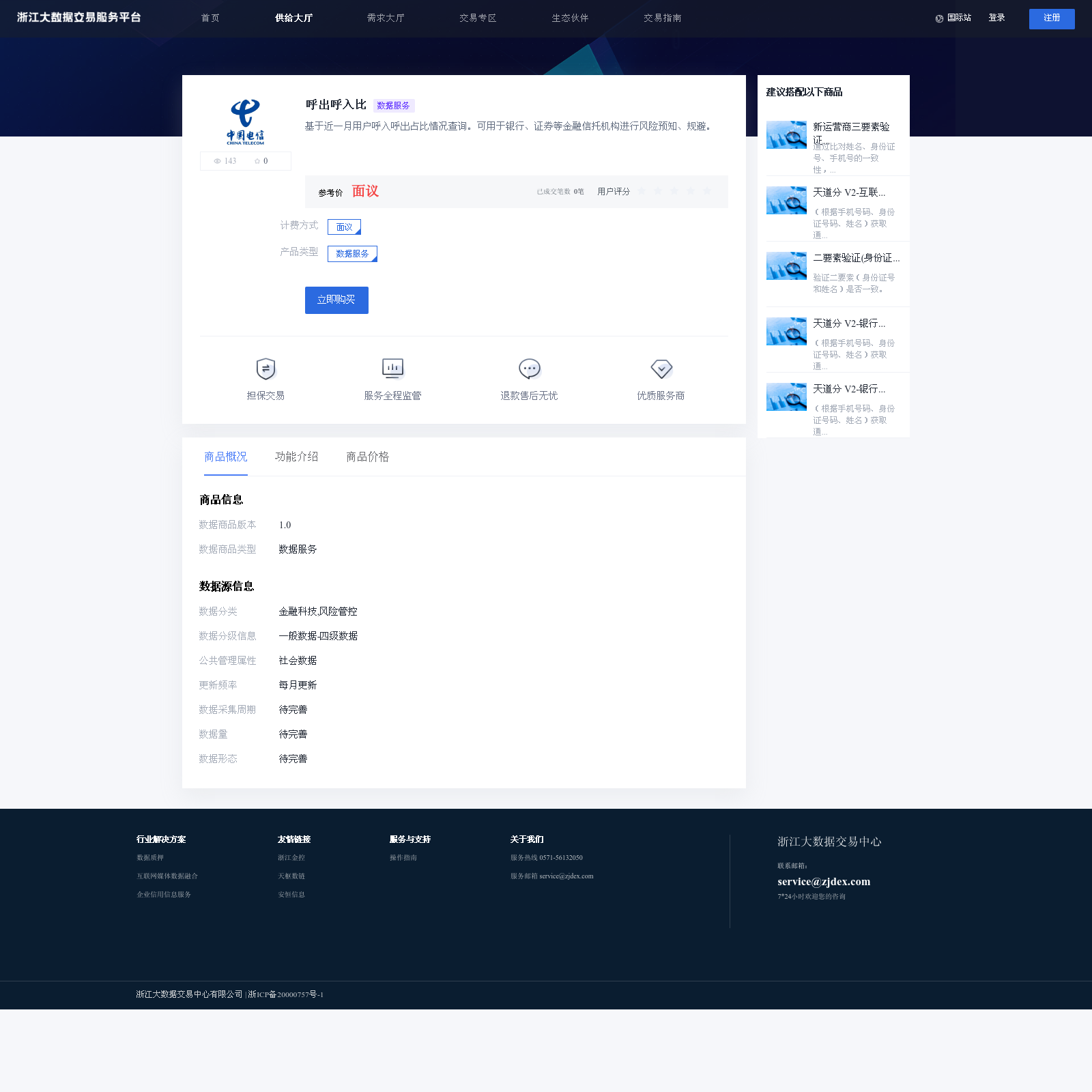 中国电信股份有限公司浙江分公司 本次上架的数据产品 呼出呼入比, 基于近一月用户呼入呼出占比情况查询。可用于银行、证券等金融信托机构进行风险预知、规避。