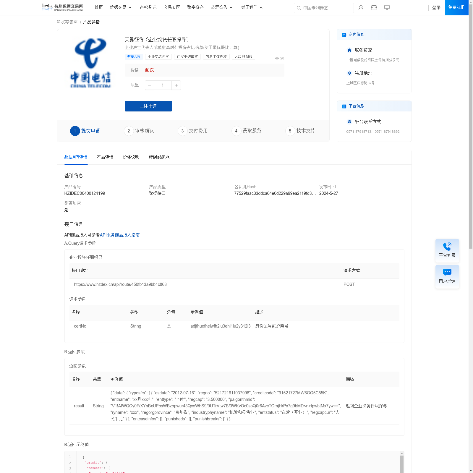中国电信股份有限公司杭州分公司 本次上架的数据产品 天翼征信(企业投资任职探寻), 企业法定代表人或董监高对外投资占比信息(使用最优股比计算)