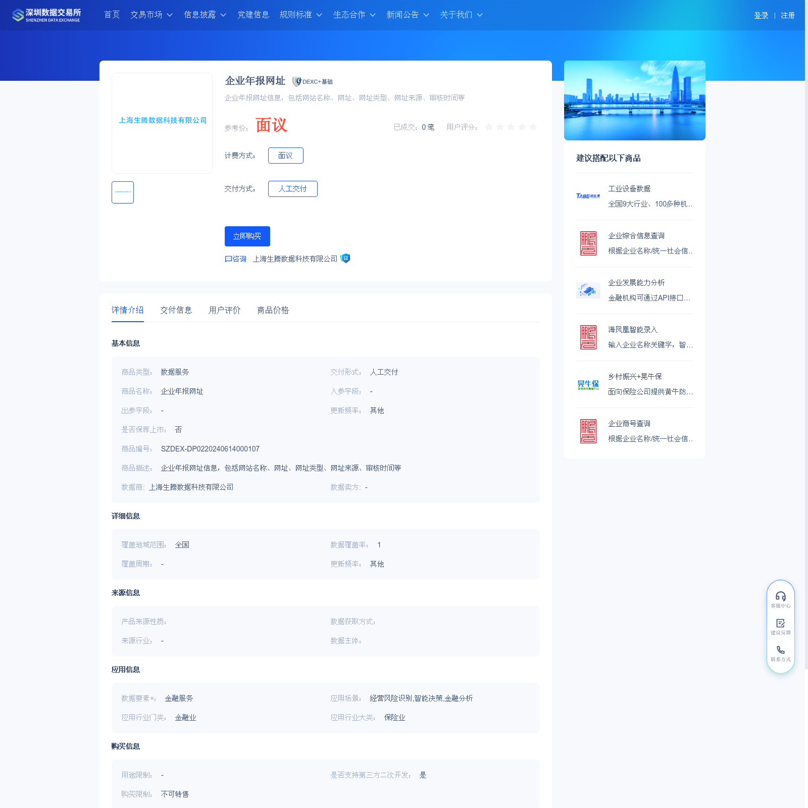 上海生腾数据科技有限公司 本次上架的数据产品 企业年报网址, 企业年报网址信息,包括网站名称、网址、网址类型、网址来源、审核时间等