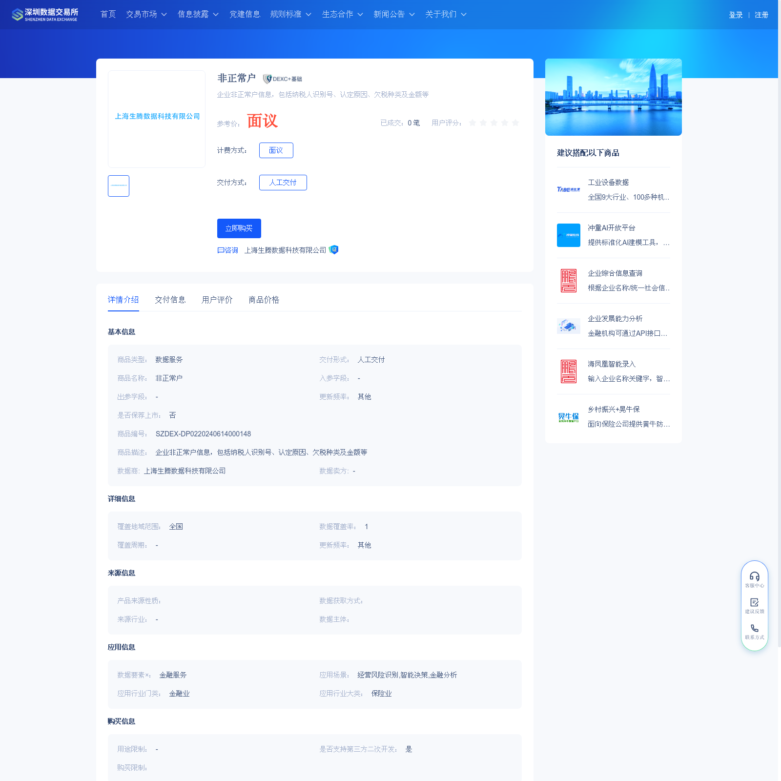 上海生腾数据科技有限公司 本次上架的数据产品 非正常户, 企业非正常户信息,包括纳税人识别号、认定原因、欠税种类及金额等