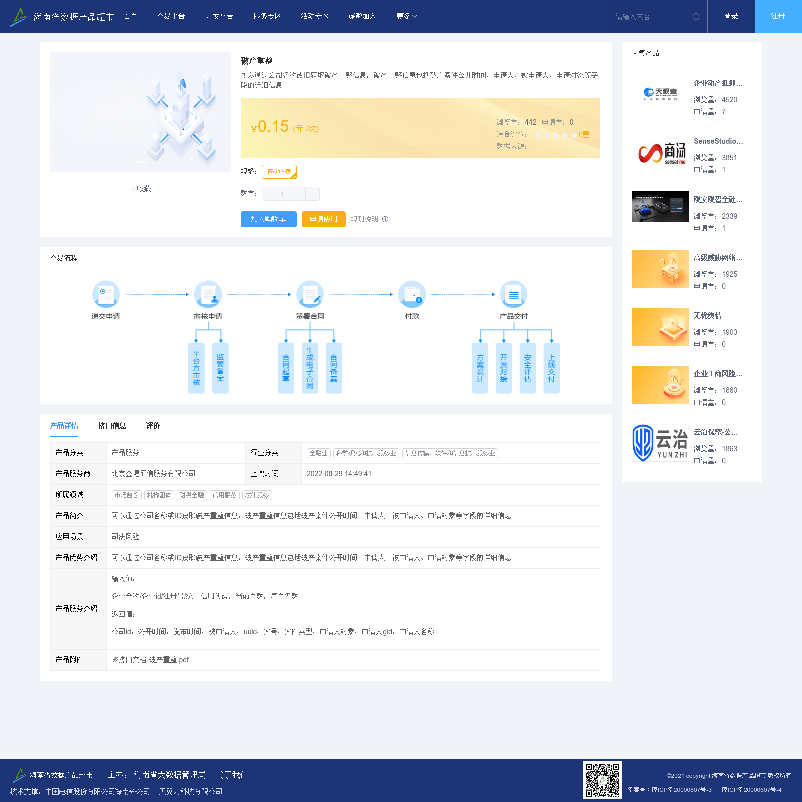 北京金堤征信服务有限公司 本次上架的数据产品 破产重整, 可以通过公司名称或ID获取破产重整信息,破产重整信息包括破产案件公开时间、申请人、被申请人、申请对象等字段的详细信息