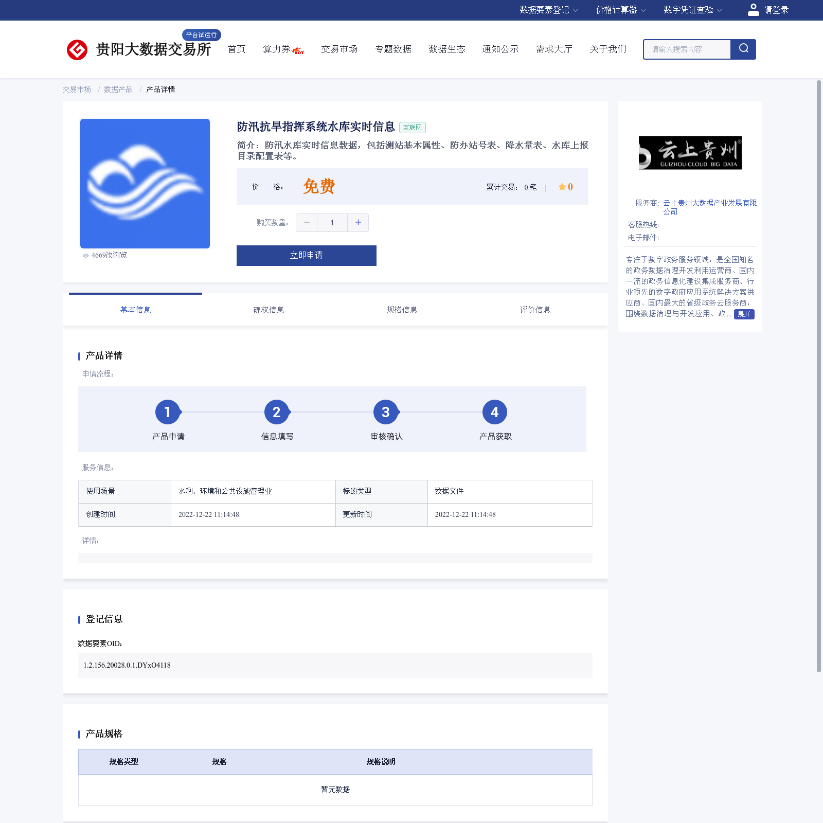 云上贵州大数据产业发展有限公司 本次上架的数据产品 防汛抗旱指挥系统水库实时信息, 防汛水库实时信息数据,包括测站基本属性、防办站号表、降水量表、水库上报目录配置表等。