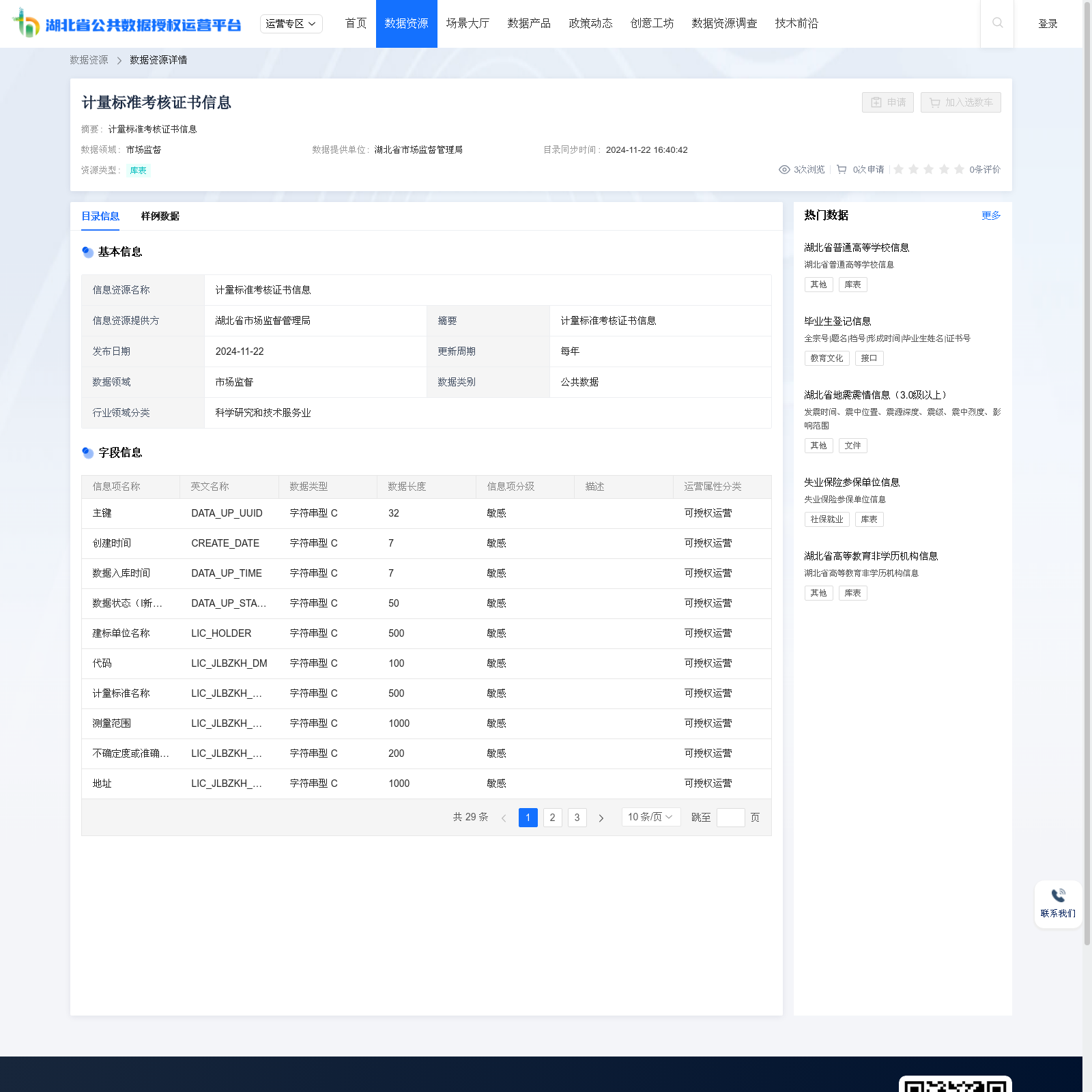 计量标准考核证书信息已成功在湖北省公共数据授权运营平台进行上架,应用在计量标准、证书考核领域